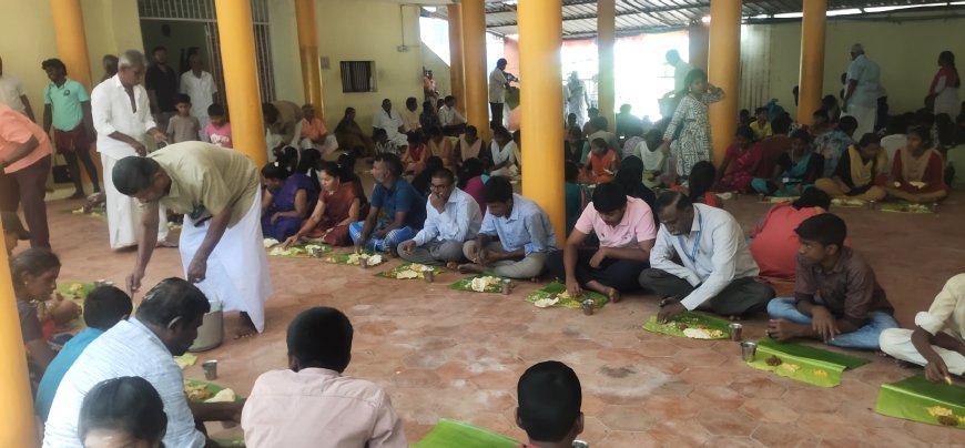 ஆண்டுதோறும் தை மாதத்தில் நடைபெறும் பல்வேறு ஆன்மிக நிகழ்ச்சிகளில் அன்னதானம் முக்கிய நிகழ்வாக கருதப்படுகிறது. அந்த வகையில், நேற்று தை பூசம் நாளை முன்னிட்டு சிறப்பு பூஜைகள், வழிபாடுகள் மற்றும் ஆன்மிக நிகழ்ச்சிகள் நடைபெற்றன. இதனைத் தொடர்ந்து நடைபெற்ற அன்னதான நிகழ்ச்சியில் ஆண், பெண், குழந்தைகள் என அனைத்து தரப்பினரும் கலந்து கொண்டனர்.அன்னதானத்தில் சாம்பார், ரசம், காய்கறி பொரியல், கூட்டு, மோர் உள்ளிட்ட வகை வகையான சைவ உணவுகள் பக்தர்களுக்கு வழங்கப்பட்டது. நிகழ்ச்சியில் கலந்து கொண்டவர்கள், ஆசிரமத்தின் ஆன்மிக சூழல் மற்றும் சேவை மனப்பான்மையை பாராட்டினர்.
